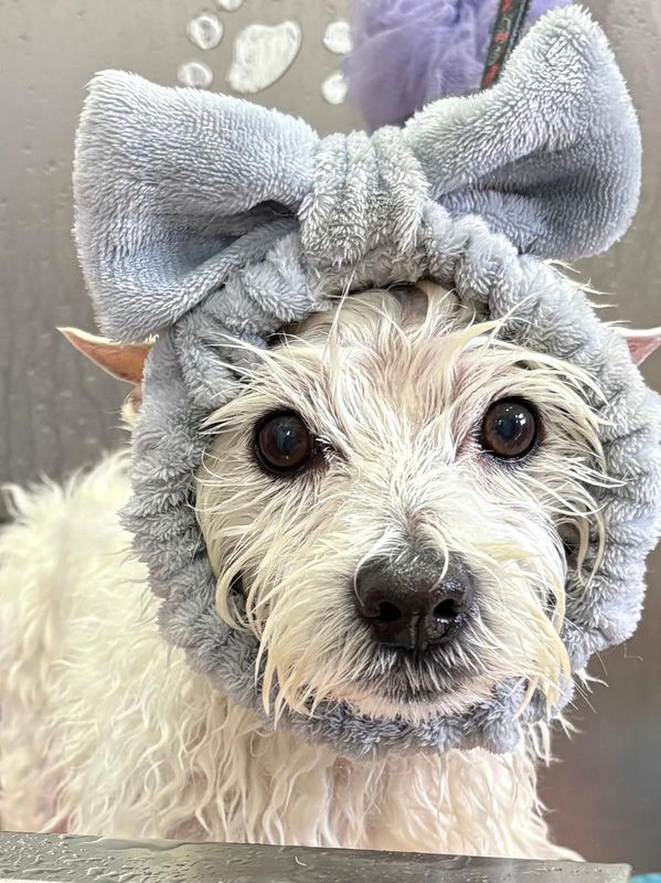 Gorgeous Rescue Pup Peanut, came in for a Tidy up, Blueberry facial, Pawdecure, relaxing body massage , wash and blow dry.